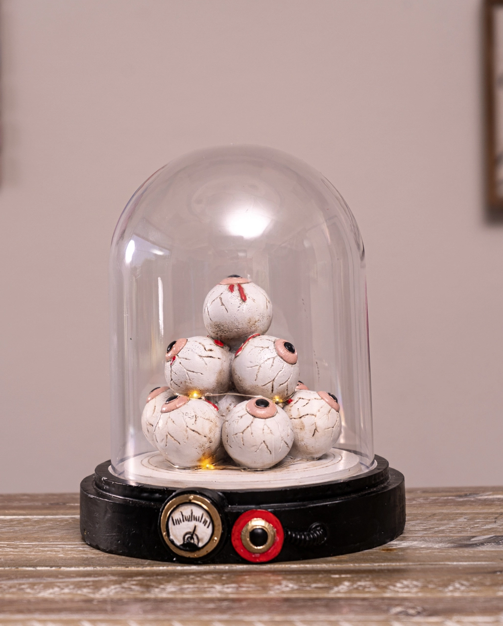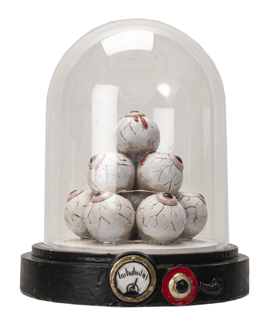 - Glaskuppel mit glotzenden Augäpfeln als Ausstellungsstück