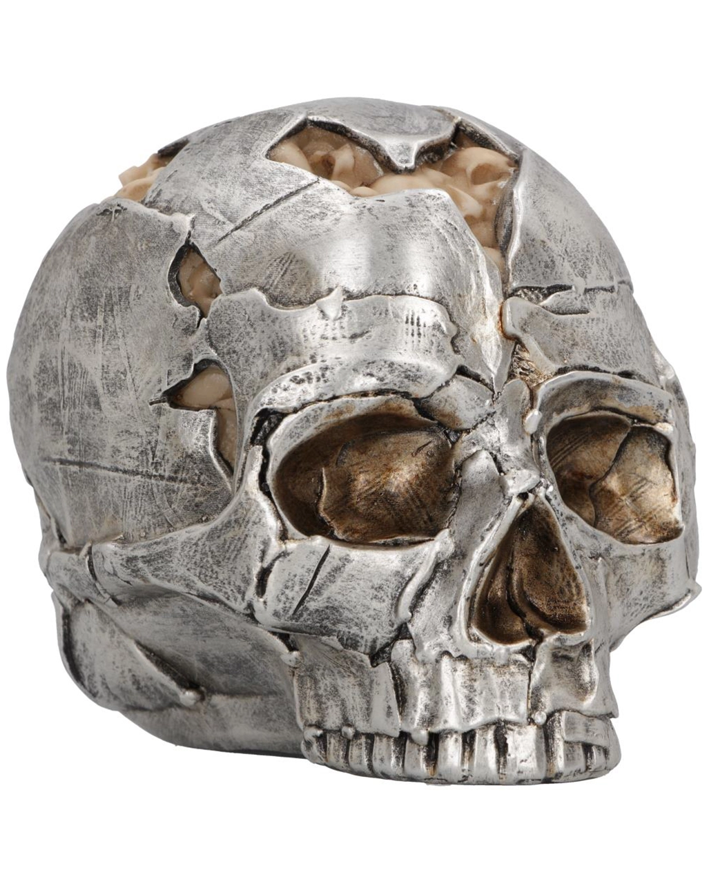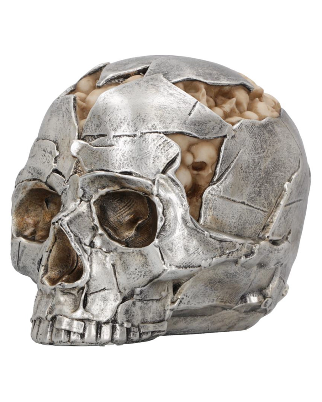Silberner Totenkopf mit beigen, kleinen Schädeln als Einschlüsse
