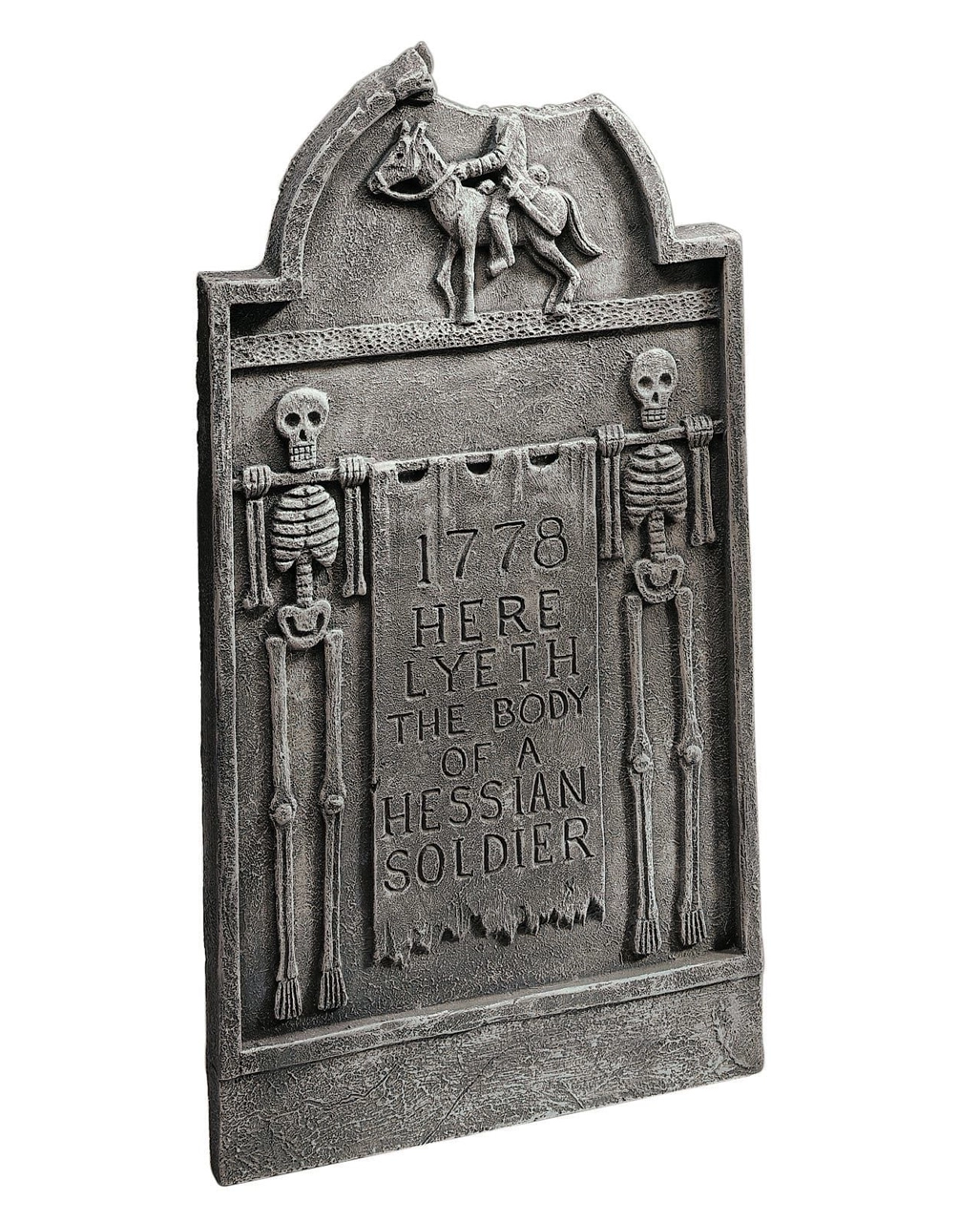 Der Grabstein Kopfloser Reiter ist ein sehr realistischer Dekorationsgrabstein, dessen zerfallenes Aussehen sofort ins Auge sticht. Auf dem zerbrochenen Horrorgrabstein sind zwei schaurige Skelette abgebildet, die zwischen sich ein Banner halten auf denen die Inschrift zum Tod des kopflosen Reiters zu lesen ist. Darüber ist der Reiter selbst abgebildet, allerdings ist eine Ecke mit seinem Kopf abgesplittert. Sei es nun Zufall oder Absicht, der kopflose Reiter ist seither auf der Suche nach seinem Kopf und treibt in Sleepy Hollow sein Unwesen und köpft alles was des nächtens nicht brav zu Hause verweilt.