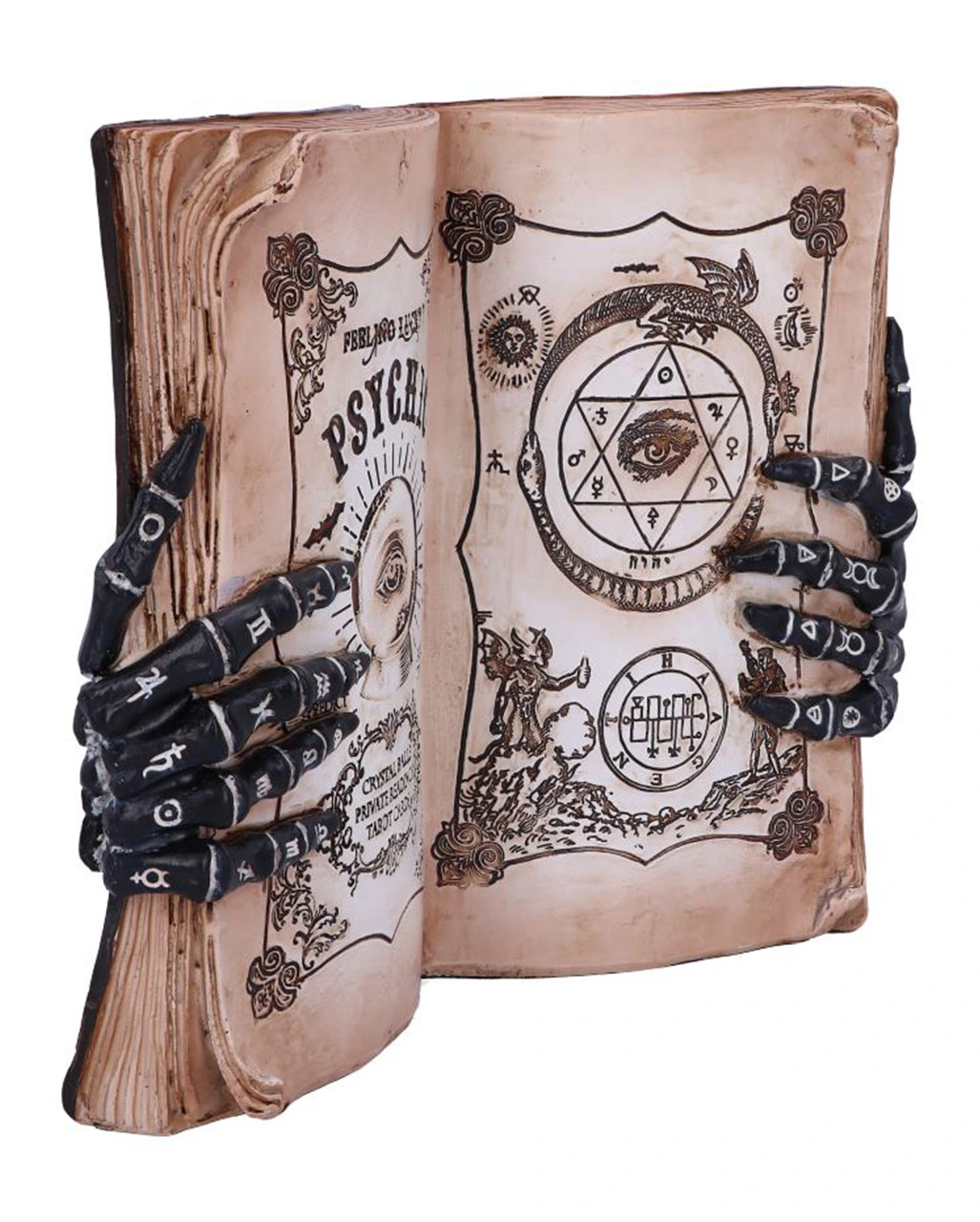 Wahrsager Buch mit Skeletthänden und okkulten Zeichen