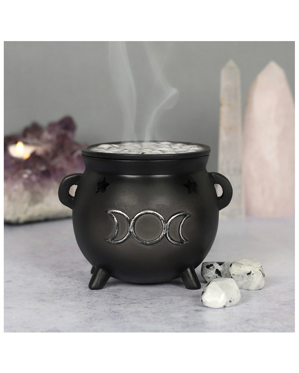 Hexenkessel mit Dreifach-Mond Räucherkegel Halter