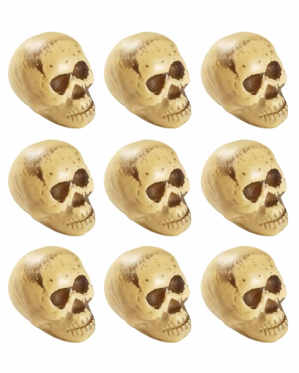 Bestelle dir jetzt das Grusel-Set mit neun kleinen Mini Totenköpfen. Die kleinen Totenschädel eignen sich perfekt für deine Halloween Tischdekoration oder als Mitbringsel zu einer Halloween Party. Die kleinen Mini Skulls warten nur darauf von dir als Halloween-Dekoration verwendet zu werden.